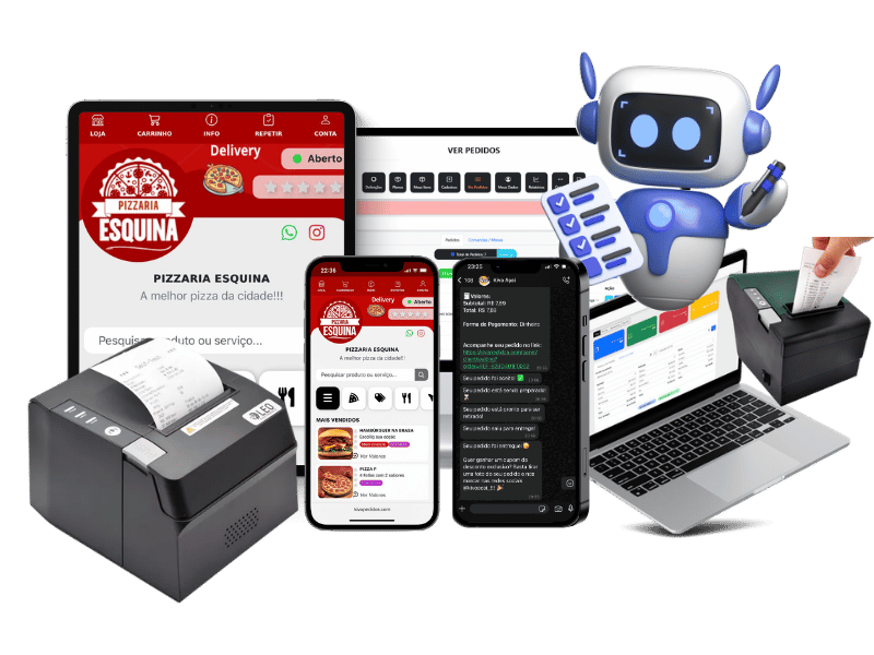 Sistema completo para delivery com cardápio digital, robô de whatsapp, PDV, mesas e relatórios